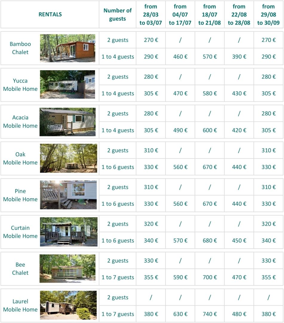 * Bed linen rental (fitted sheet, flat sheet, pillowcase): €10 (single or double)
